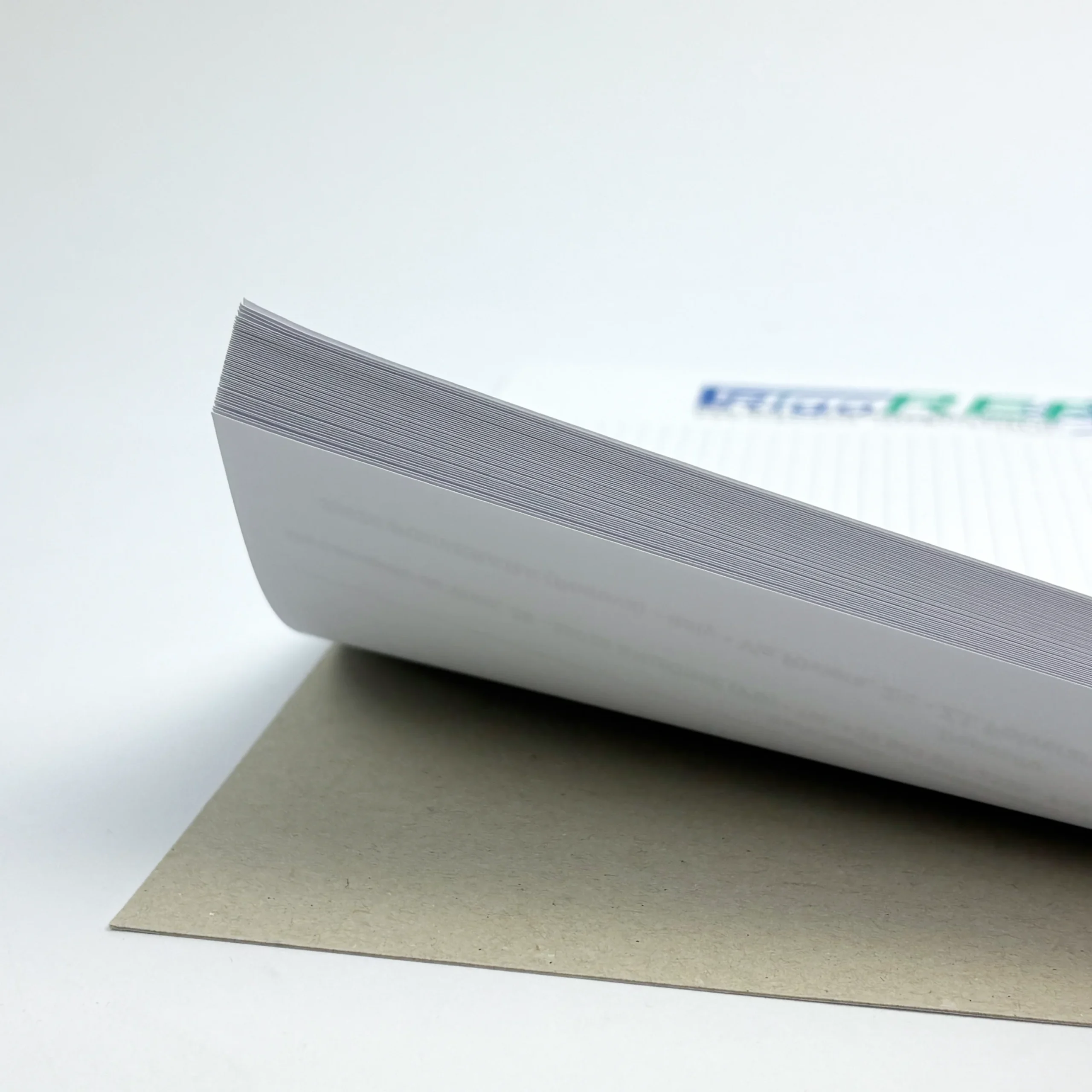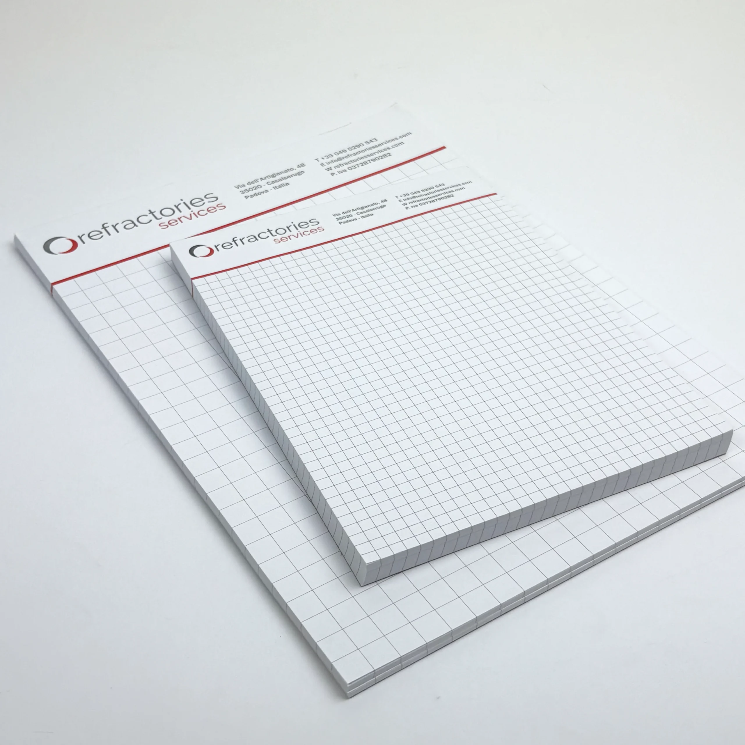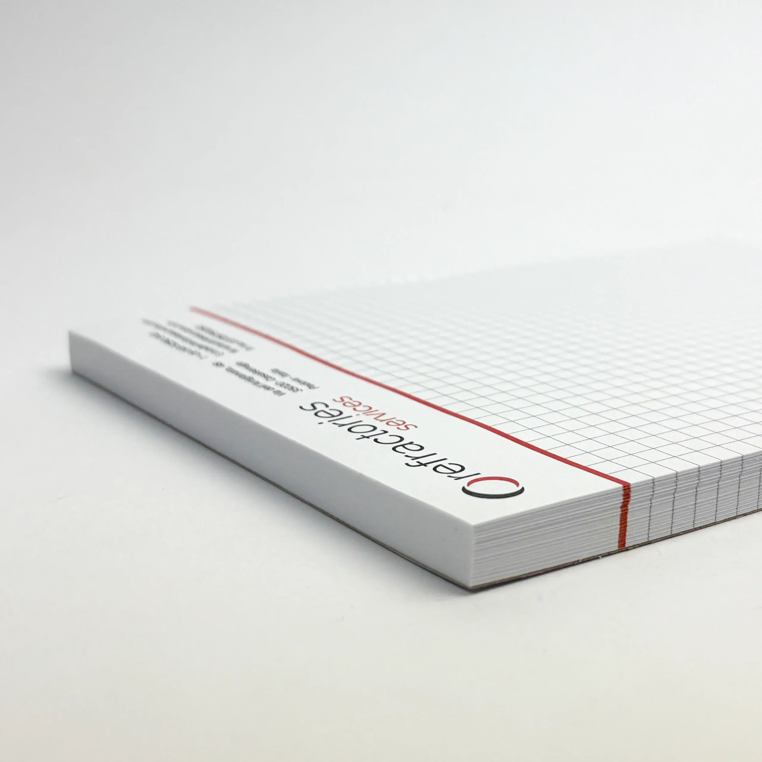 I block notes incollati rappresentano la soluzione standard per l’operatività aziendale, tecnica e promozionale. La lavorazione prevede l’applicazione di colla vinilica specifica sul lato testa (lato corto) o sul lato lungo, garantendo la coesione del blocco e uno strappo del foglio fluido e privo di residui.