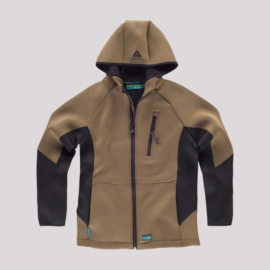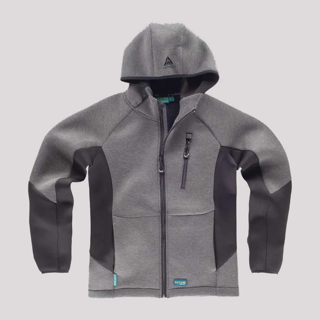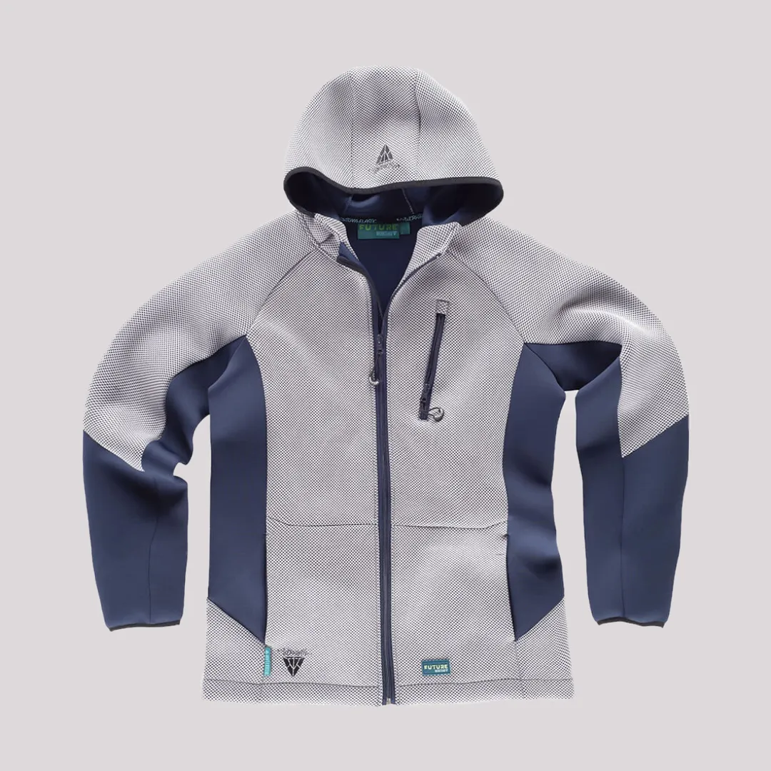 Giacca bicolore con zip lunga e cappuccio progettata per offrire comfort, protezione e libertà di movimento durante le attività lavorative. La manica raglan e il collo alto con copricuciture interne assicurano una vestibilità ergonomica e resistente. Realizzata in tessuto tecnico misto (54% poliestere, 29% rayon, 10% nylon, 7% elastane) da 340 g/m², con polsini e cappuccio rifiniti con sbieco elastico a contrasto per maggiore stabilità e comfort.